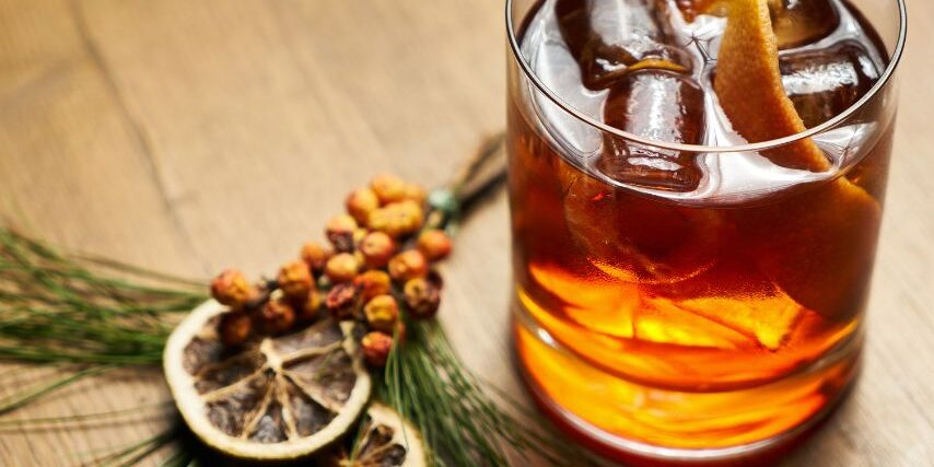 - Release the oil from the orange peel by giving it a twist over the drink. Optionally, drop the orange peel into the glass as a garnish.
