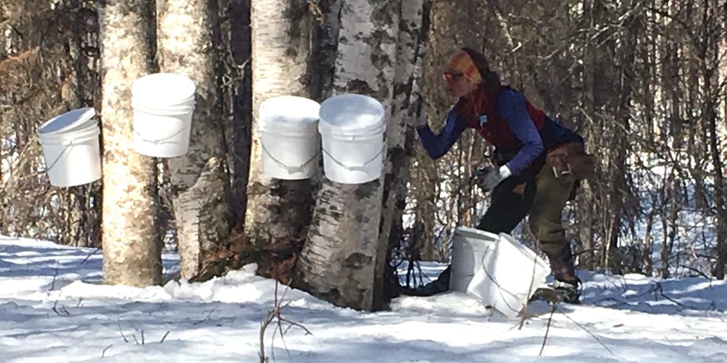 The sap is running and so are we! Sap appeared in Talkeetna area birches starting on April 9th. It will take our crew of seven hard workers four long, strenuous days to tap 10,500 birches. We just hauled in our first 1600 gallons of beautiful, clear sap! That means it’s going to get noisy around here with pumps pumping, pressure washers cleaning, reverse osmosis concentrating, and the evaporator boiling the sap to sweet, amber birch syrup.